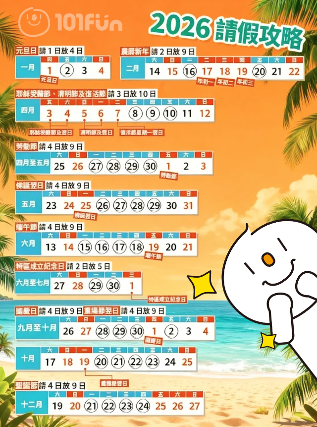 在計劃旅行前,首先要了解2026年的公眾假期安排。以下是主要的公眾假期